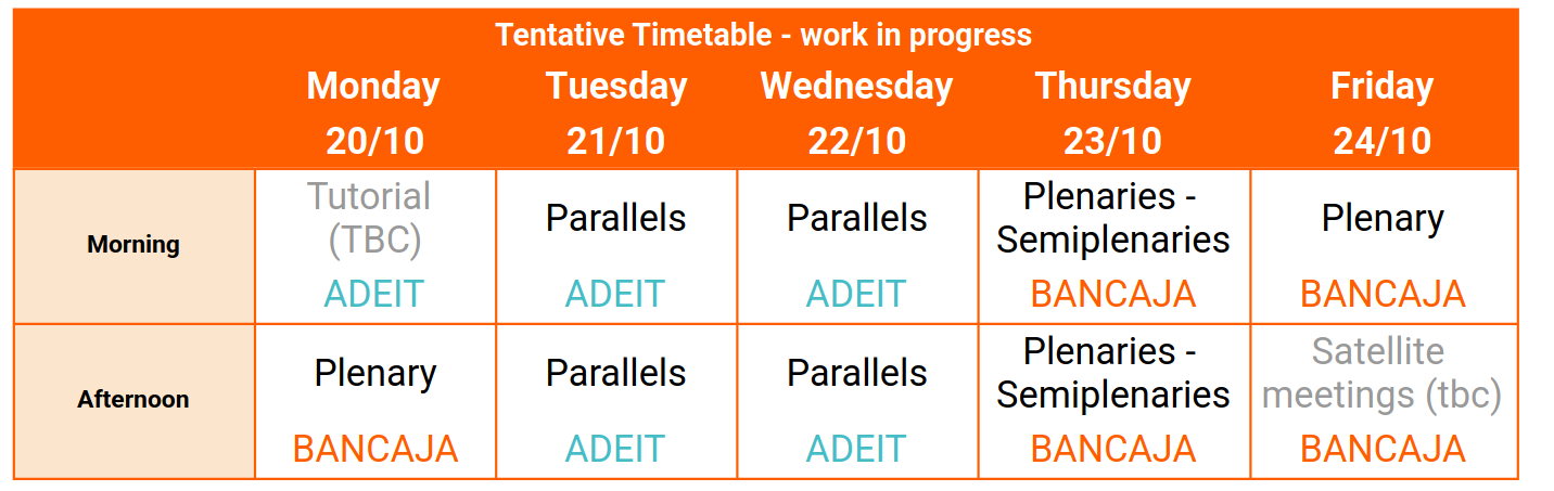 The detailed program and the definition of the study groups is being prepared. A tentative timetable is shown below to facilitate your travel arrangements.